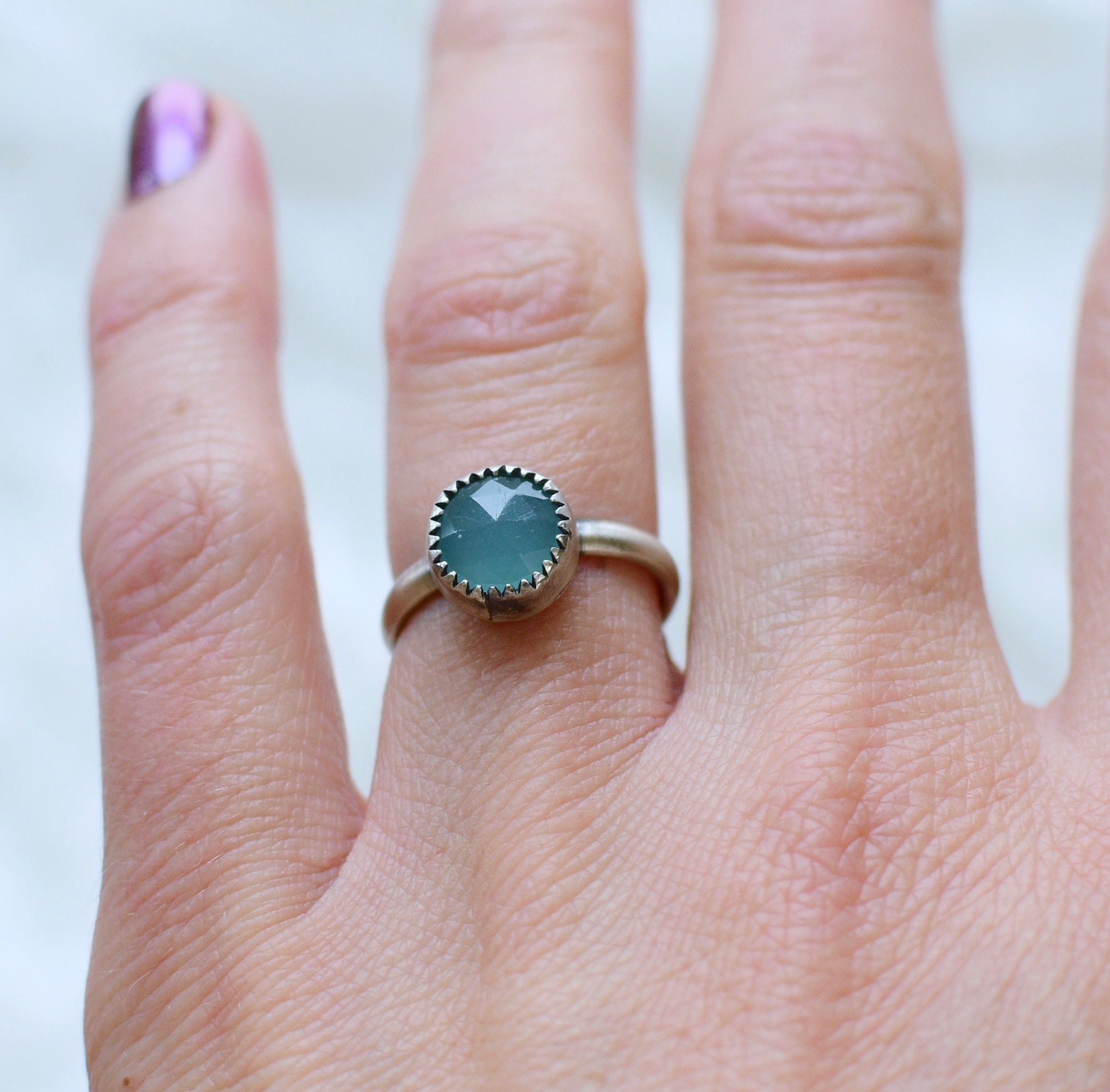 Gemstone stacker ring- size 5.5- aqua chalcedony